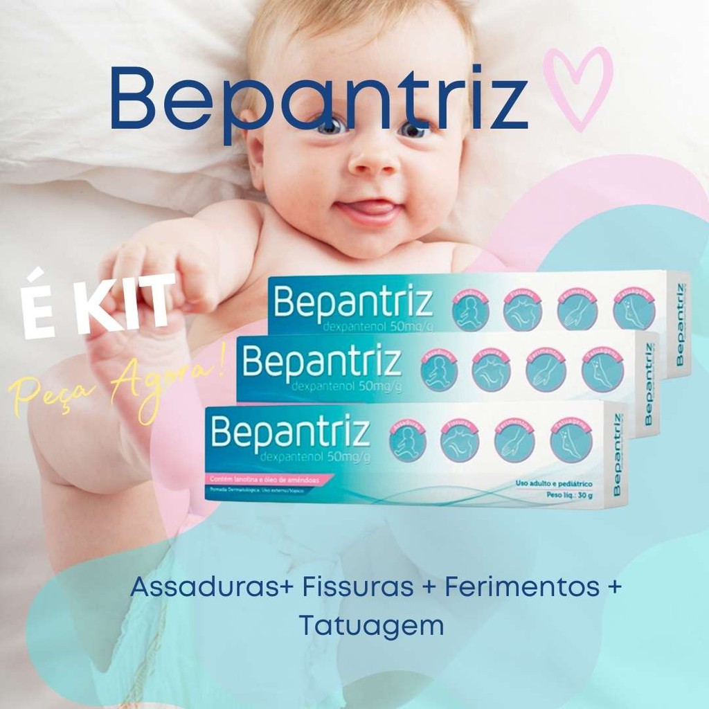 Kit Com 3 Pomada Bepantriz Dermatologica 30g Cada Hidratante Tratar Assaduras Fissuras Ferimentos Tatuagem Rachaduras Pele Shopee Brasil