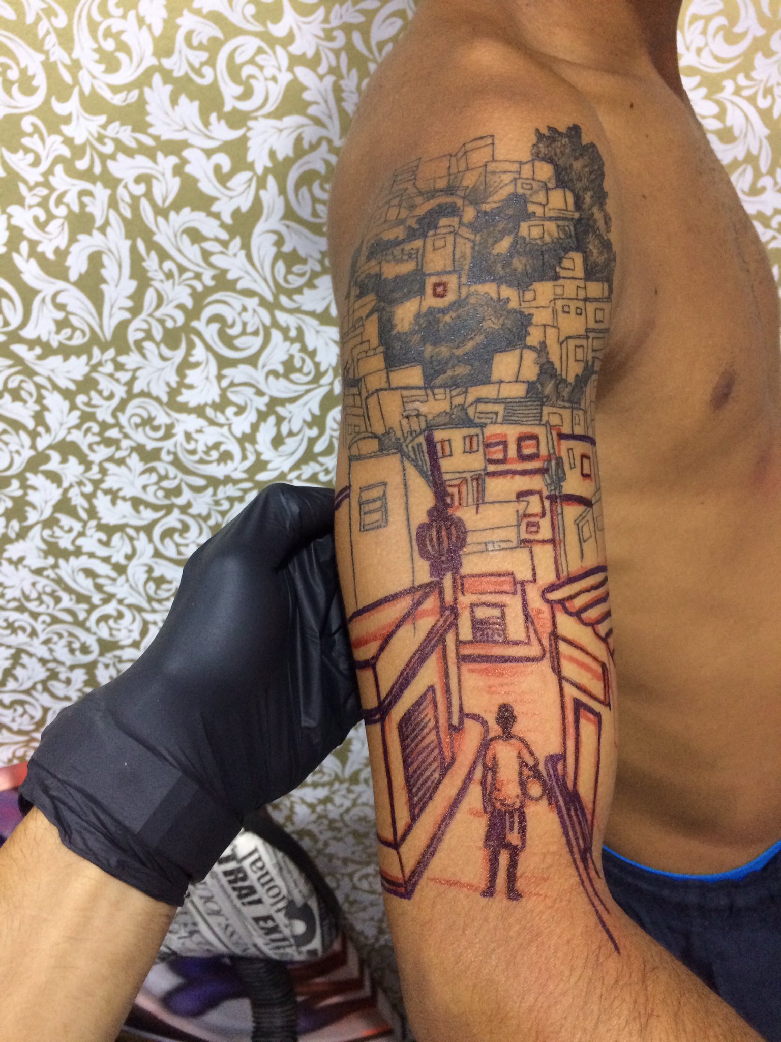 Braço com tatuagem de favela Inal Bersekovs photorealistic tattoos.