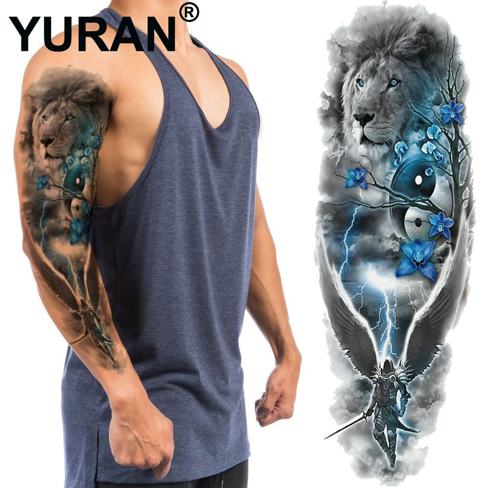 Cavaleiro Das Trevas Com Leao Grande Preto Tatuagem Temporaria Adesivos 48 17 Cm Das Mulheres Dos Homens A Prova D Agua Falso Corpo Tatuagem Manga Braco Completo Tatto De Beautys8 21 9 Pt Dhgate Com