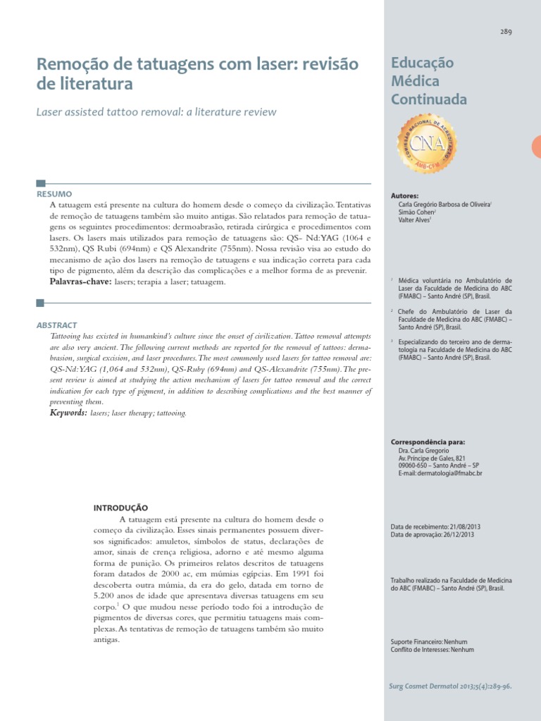 Remocao De Tatuagens Com Laser Revisao De Literatura Pigmento Cor