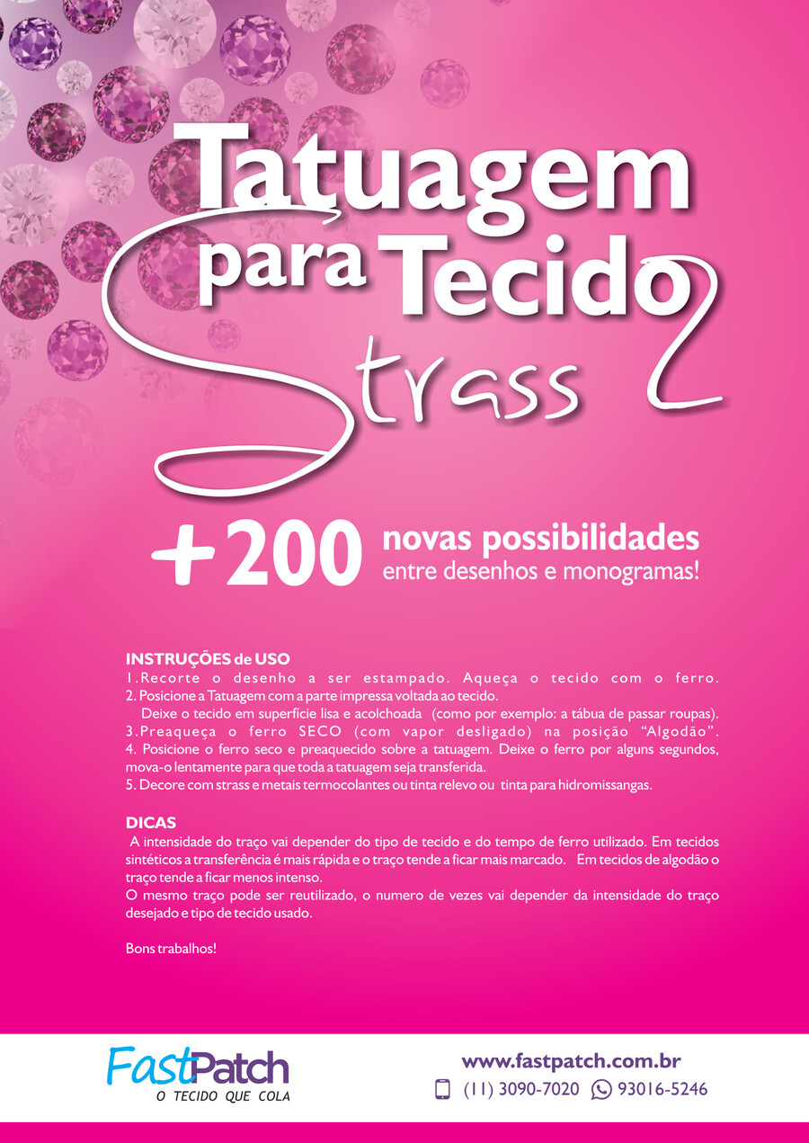 As tatuagens são muito mais do que desenhos corporais expressivos. Tatuagem para Tecido Strass Volume 2 - Fast PatchProduza lindas peças com Strass Termodinâmico FastPatch. São mais de 200 possibilidades.