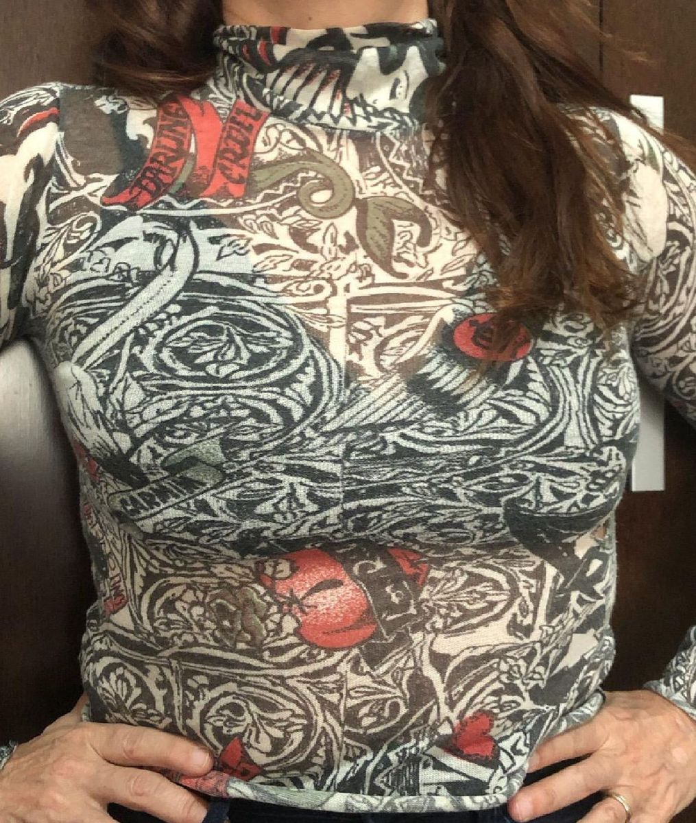 Essas blusas são ótimas opções para serem usadas por baixo de uma blusa mais fina ou até mesmo por baixo de uma blusa transparente fazendo assim um look super bonito. Ele estará em SP amanhã e terça. Descubra a melhor forma de comprar online. - Componha um look divertido para uma festa à fantasia ou. Blusa segunda pele tatuagem Em contato com a pele este underwear tem a função de manter o calor natural do corpo ao mesmo tempo que absorve o suor mantendo-o sempre seco e garantindo o conforto térmico. Blusa segunda pele feminina estampas tatuagem. R 7999 R 11999. Segunda Pele Tatto Camiseta Tatuagem Tato Shirt Tattoo Blusa. Entre e conheça as nossas incriveis ofertas. 100 Algodão TAMANHO BUSTO OMBRO COMPRIMENTO P 94 cm 40 cm 64 cm M 98 cm 42 cm 66 cm G 102 cm 44 cm 68 cm. A peça tem caimento ajustado ao corpo. Regulamento - FRETE GRÁTIS. Descubra a melhor forma de comprar online.