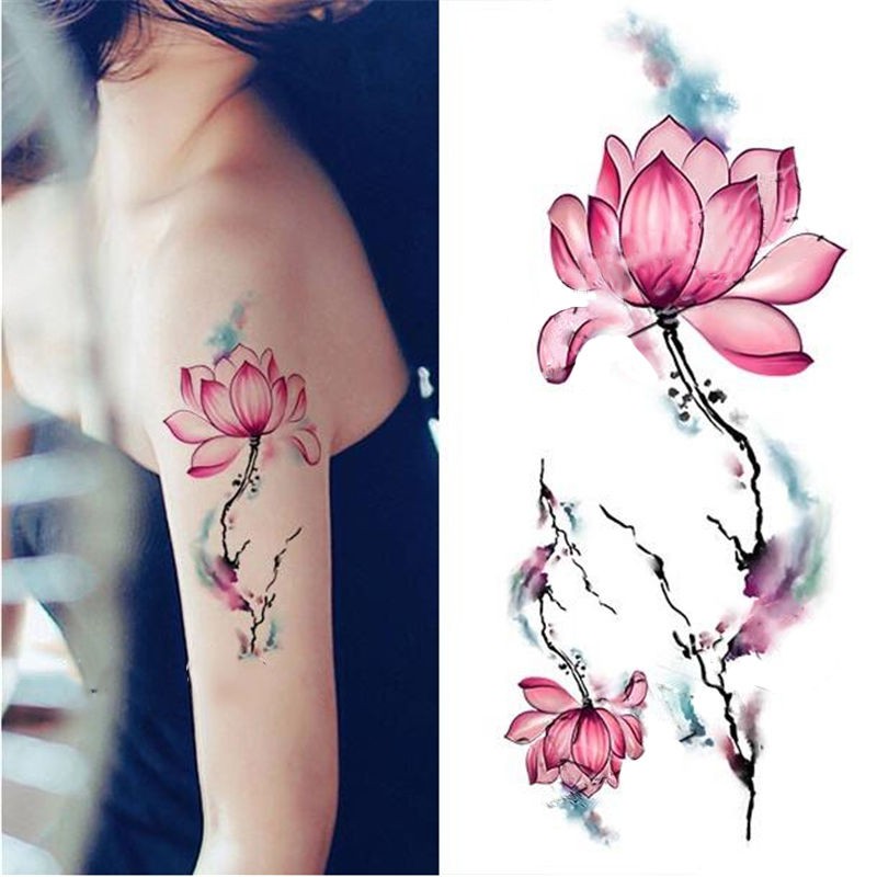 1 Folha A Prova D Agua Etiqueta Do Tatuagem Temporaria Aquarela Braco De Lotus Body Art Decalque Shopee Brasil