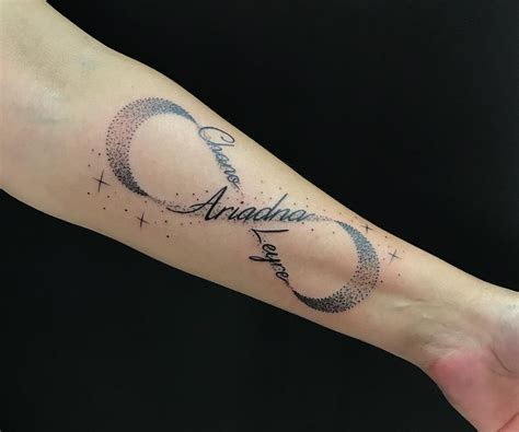 Tatuagem Simbolo Infinito. Tatuagem “família para sempre” formando o símbolo do infinito no pé. O símbolo do infinito representas alguma forma de amor eterno. É muito usado em tatuagens, sobretudo por casais. Assim, o desenho mostra que o sentimento positivo existente. A amanda tatuou o símbolo do infinito no braço, junto com sua amiga, para representar a amizade entre elas. Enviado em 10 de. Tatuagem minimalista de símbolo do infinito. O estilo de tatuagem de símbolo do infinito costuma ser a técnica minimalista, que consiste em tatuagens de pequenos tamanhos e lugares. O que é infinito para você? Talvez sua amizade, seu amor pelo seu marido ou esposa ou mesmo sua fé em deus? Seja lá o que acredite ser infinito na sua vida, isso pode ser representado. O símbolo do infinito, também conhecido como “oito deitado” (∞), representa o conceito que simboliza eternidade, como algo que não tem começo nem fim. É um desenho bastante usado. A tatuagem do símbolo do infinito também pode ser estilizado e desenhado em forma de dois corações, para maximizar o sentido de amor infinito. Mirella santos e wellington.